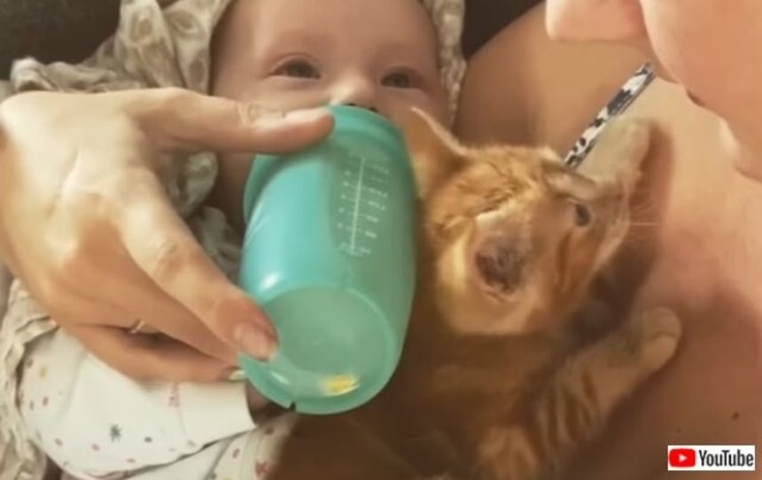 赤ちゃん+子猫、それも仲良しときたら、話に聞いただけでも「可愛い!」に違いないと思うだろう。実際そうなんだから仕方がない。