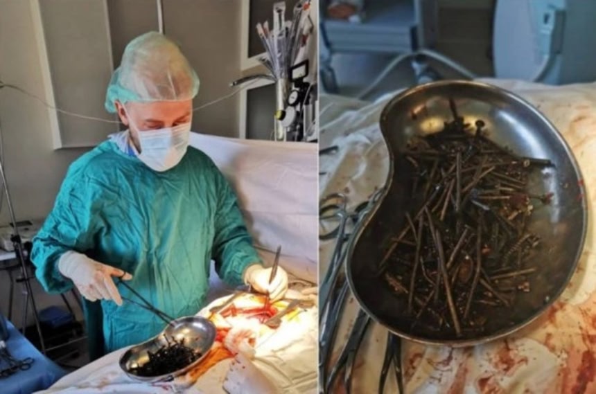 腹痛に耐えられなくなった男性は病院に運ばれ、急遽摘出手術が行われた。すると胃の中からネジや釘、刃など1kgを超える異物が摘出されたという。