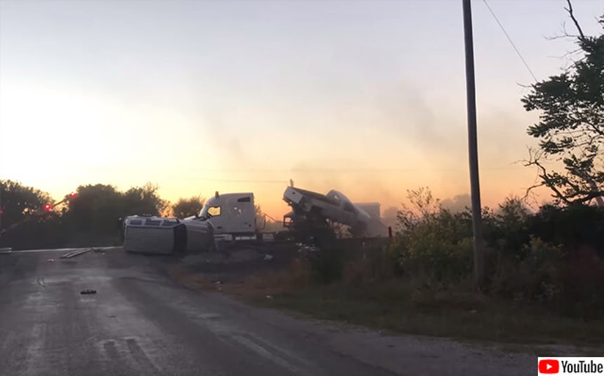 アメリカでの出来事。テキサス州フォートワースから、オクラホマ州オクラホマシティ間を走行中のアムトラック旅客列車がラブ郡タッカービルの踏切で、数台の自動車を積んだ運搬トラックと衝突した。