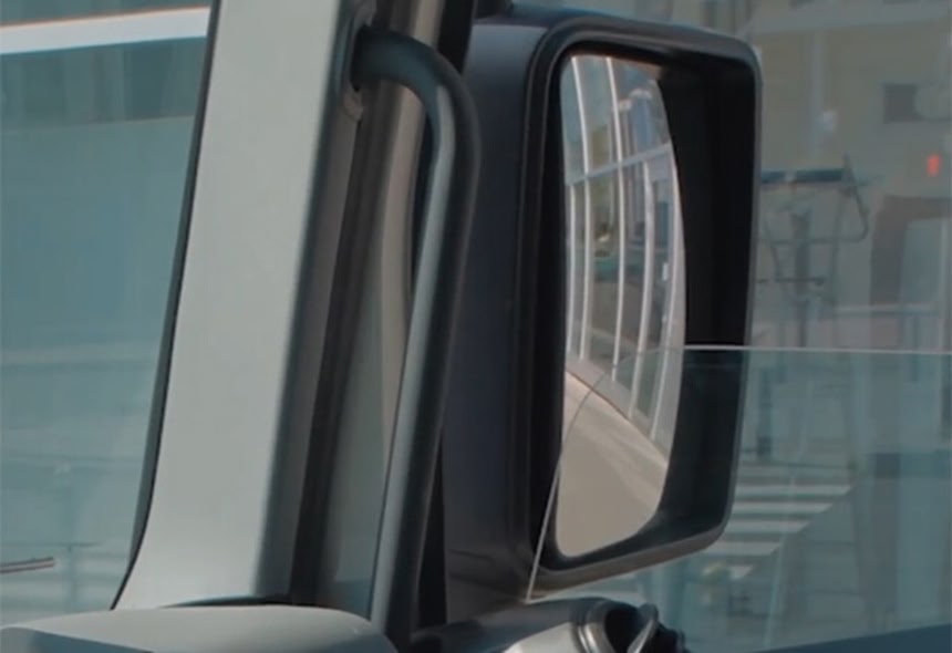 トラックのミラー周囲に死角はほぼ無いです。