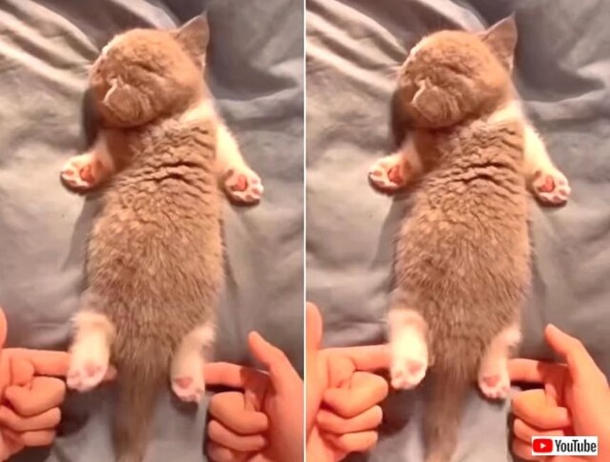 ペタンと手足を投げ出して、うつぶせになって、すやすや眠っている子猫ちゃん。たまらずナデナデしてみちゃったら…。
