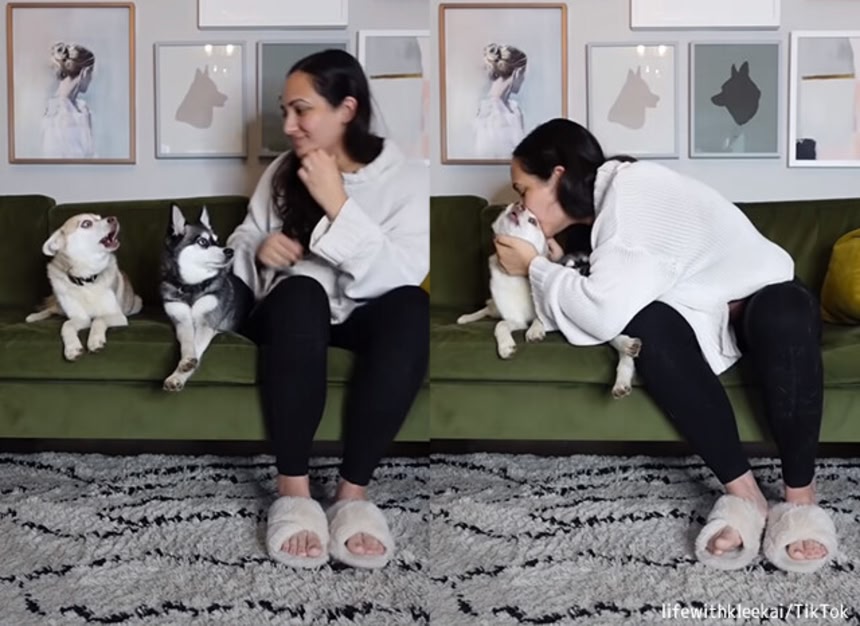 この日、飼い主女性が姉のスカイにキスしたところ、コッパーがけたたましい鳴き声を上げてブーイング。どうやら自分が先にキスしてもらえなかったことに腹を立てたらしい。
