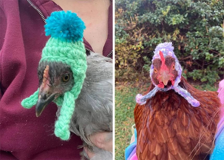 そんな中、手作り通販サイトEtsyではニワトリの為のスタイリッシュなかぎ針編みのニット帽や衣類が人気となっている。
