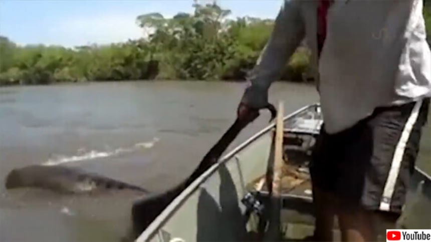 アナコンダは追いかけられていた。漁師の執拗な嫌がらせ