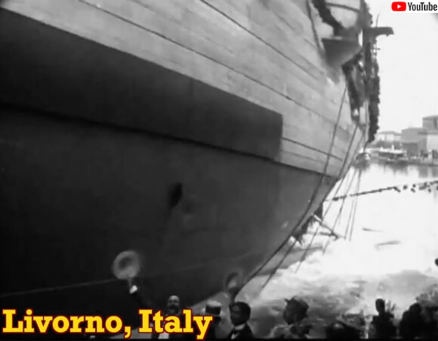 この画像を大きなサイズで見る3. 1899年8月6日 イタリアのリボルノを出発する船