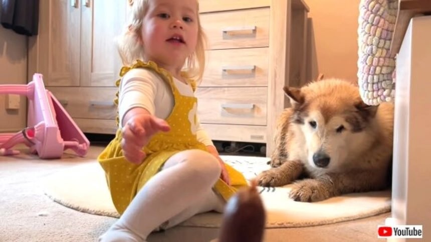 「見せるだけだよ。あげちゃダメだよ!」と、こうやってオヤツでつることも、パパのシェーンさんがミアちゃんに伝授しているようだ。