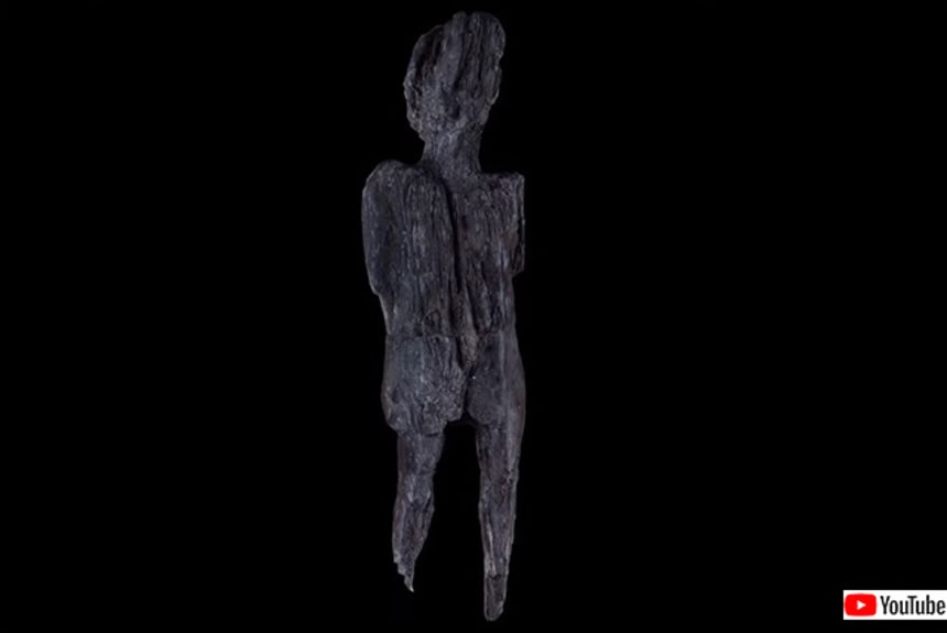 その後の発掘調査により、一本の木から切り出された、高さ67センチ、横18センチの人型像であることが判明した。