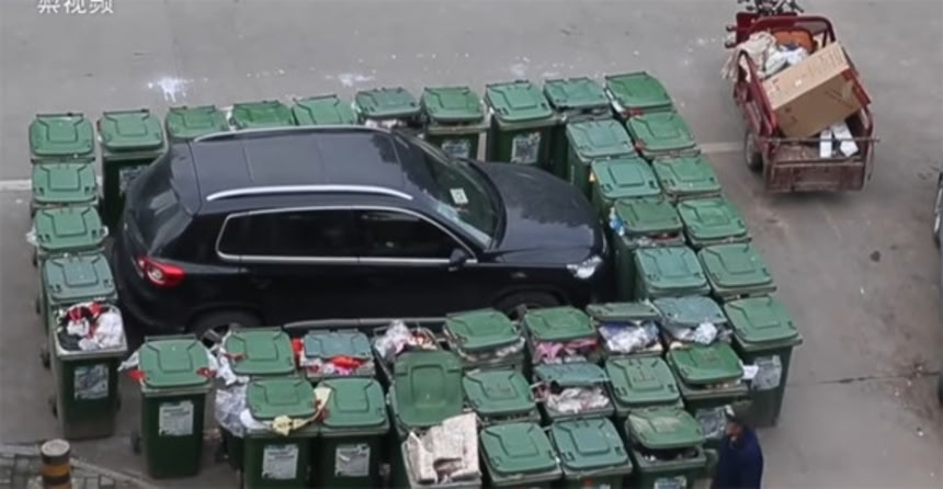 身勝手といえなくもない自分勝手な駐車の仕方に、買い物客たちは怒り心頭。ショッピングカートを使って制裁を加えたようだ。