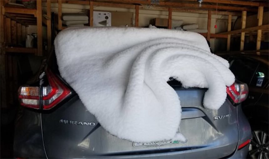 6. 車に白いブランケット?