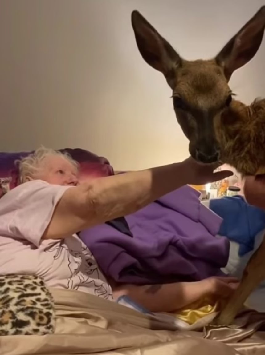 そこで娘はやさしい人々の協力を経て、ついに母親の病室に子鹿を連れていくことに成功。母親は病床で手を伸ばし、頭を撫でながら「なんて美しい子なんでしょう…」と喜びの声をもらした。