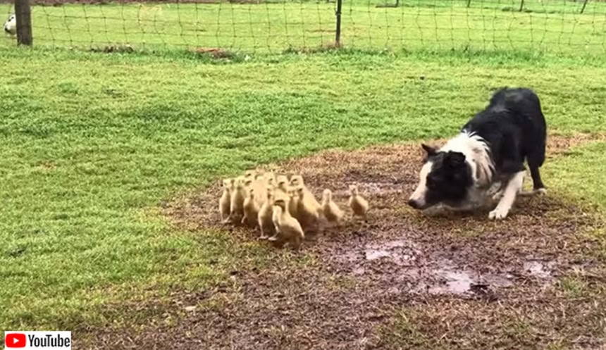 こんな小さなヒナたちまでも1か所にまとめて誘導することが可能なのだ。ボーダーコリーはヒナたちを水のある場所へと誘導していく。
