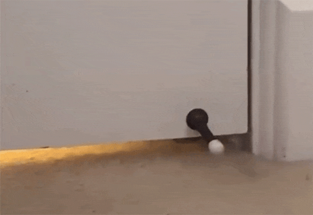 ドアストッパーが自分の手に当たらないように、さっと引っ込めるのが賢くて可愛いな