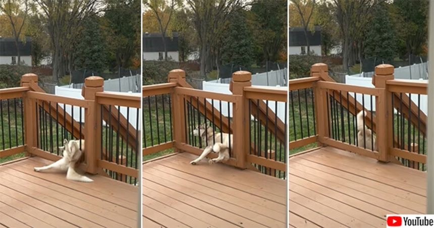 この画像を大きなサイズで見る飼い主は「オーマイガー!」を連発。もうこの柵は通用しなくなってしまったようだ。かなり物理的な力を使っているので、柵も壊れてしまうかもしれない。