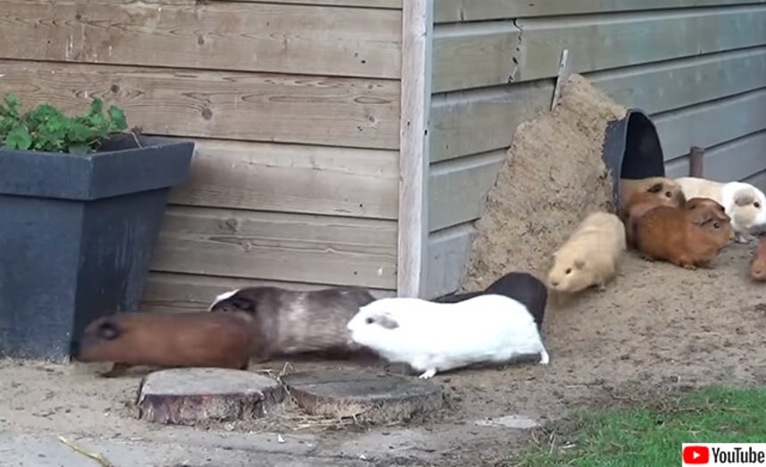 この画像を大きなサイズで見るオランダの牧場で暮らすたくさんのモルモットたち。朝と夜の食事の時間になるとみんなで一緒に給食タイム。