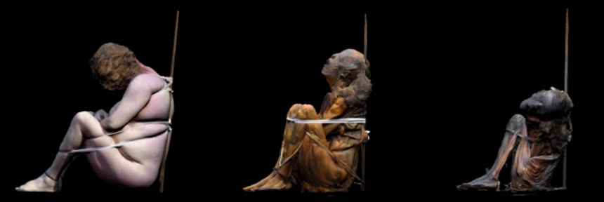 この画像を大きなサイズで見るこの新たな研究の論文著者は、埋葬前に乾燥させた遺体は、所定の位置で手足を縛っているロープを徐々にきつくしていって、望ましい姿勢になるようにしたのではないかと考えている。