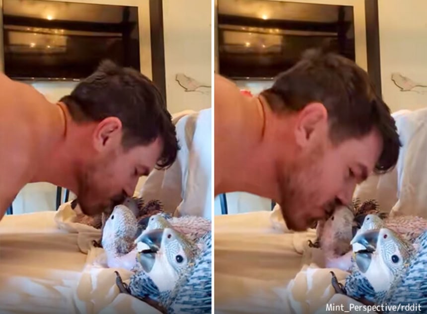 何もかもが「あま~~い!」のだ。愛する6羽の鳥をベッドで寝せることにした男性は、1羽1羽の名前を呼びながら、順番にやさしくキスをしていく。