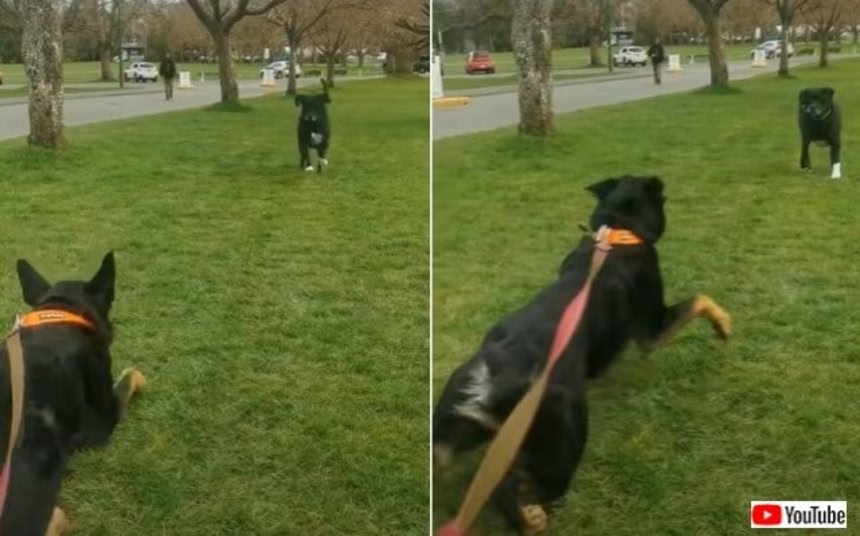 この画像を大きなサイズで見る撮影者さんの愛犬よりも先に、向こうからやって来た犬…シャイロは、ここにいるのがだれか分かったようだ。こちらへ走ってくるシャイロくんに、撮影者さんの犬もようやく確信が持てたみたい。