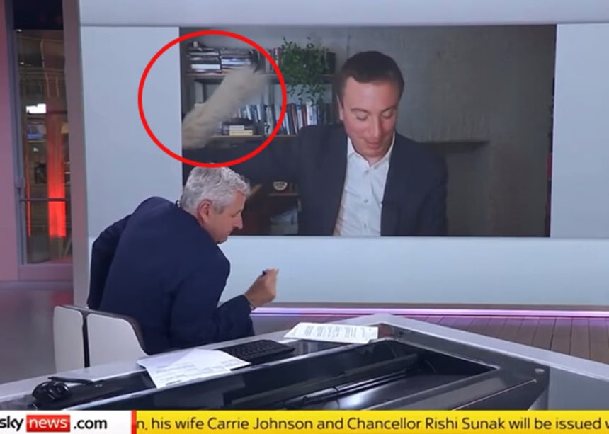 スカイニュース政治記者の飼い猫、中継に映り込む