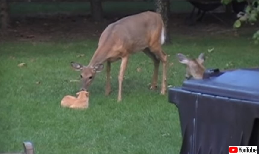 これまでも、猫の体をグルーミング(舐められる)する鹿たちは数多く目撃されていたが、まだいたようだ。