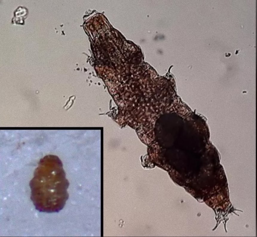 体長0.05~1.2ミリの小さな「クマムシ」(緩歩動物)は、海や川だけでなく、岩や木をおおう湿ったコケなど、水があるところなら地球上のほぼあらゆるところに存在する。
