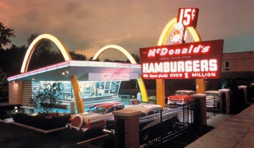 1940年創業に操業したマクドナルドの現在のロゴは赤に黄色のゴールデンアーチとなっているが、このデザインに落ち着いたのは1960年代後半だ。それ以前は違うデザインだったのだ。