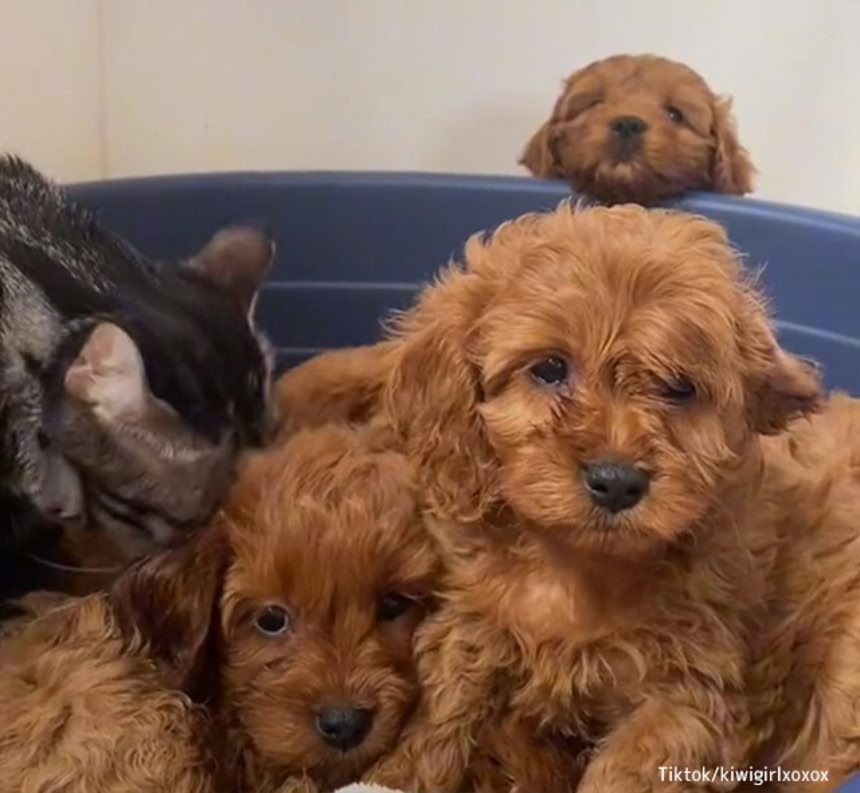 母犬のカプードルも、メディナが子犬たちの世話をすることを歓迎しており、共同での養育を容認しているようだ。