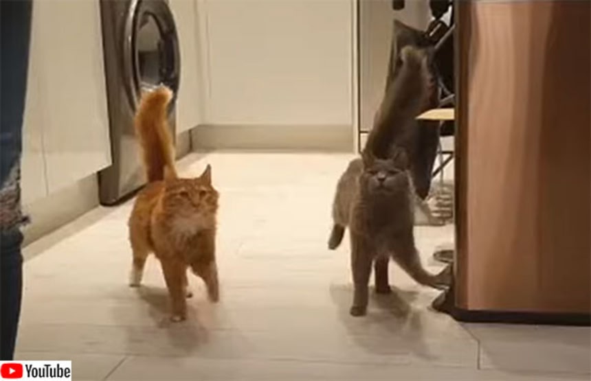 なんとなく奥の猫が合わせに行ってる感じがするけど