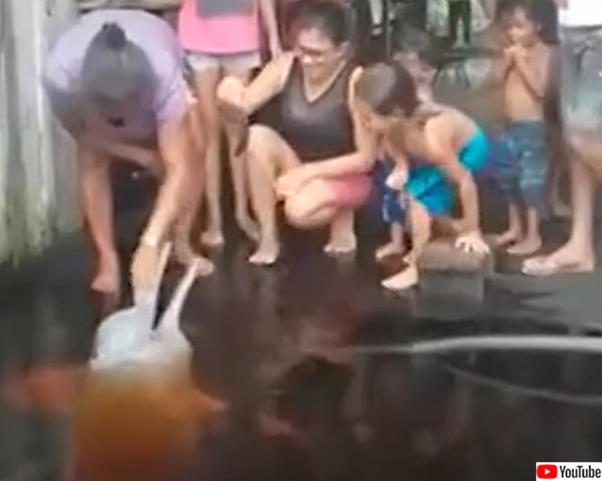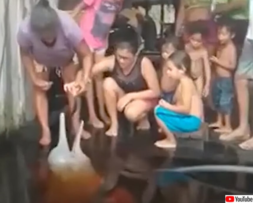 ブラジル、アマゾナス州イランドゥバで豪雨により鉄砲水が発生した後、民家の玄関先まで泳ぎ着いたのはなんとイルカ!