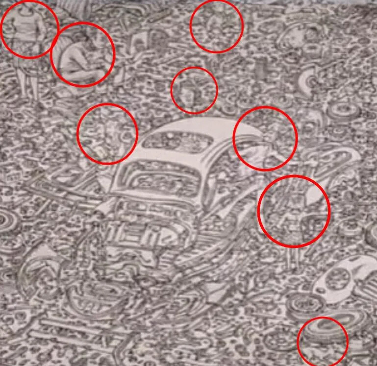 脳の状態チェック?画像に隠れてる7人と猫1匹を探せ!