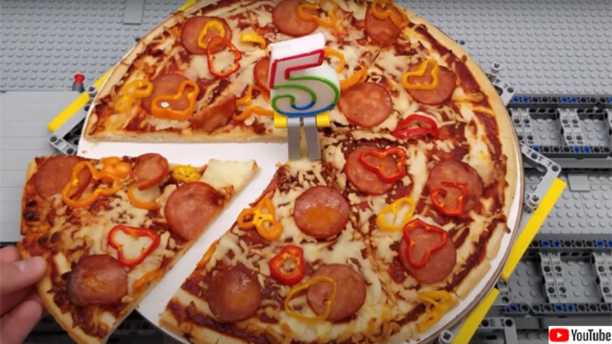この画像を大きなサイズで見るYouTubeで5周年を祝う特別な動画です! このピザパーティーにぜひ参加を。 ピザ作りは芸術そして愛であり、レゴを使ったピザ作りは楽しく満足できるものです。