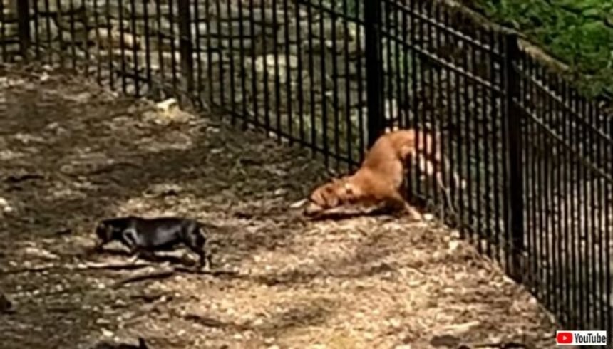 そう考えたらしい犬が、鉄製のフェンスを潜り抜けてしまう映像が届いたよ。まずはぜひ動画を見てほしい。