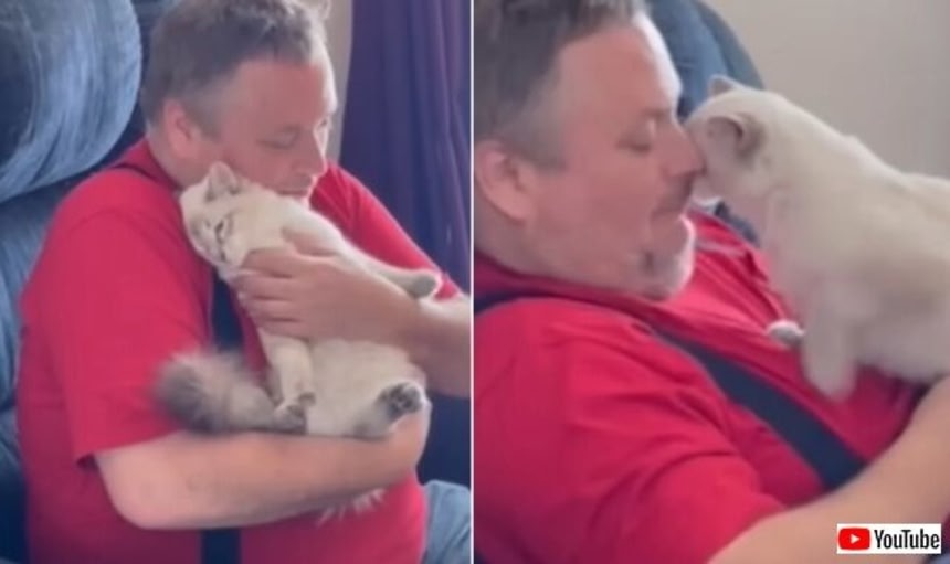 今回もそんな風に、保護猫に魅了されてしまった犬好きの男性が見つかったので紹介しよう。