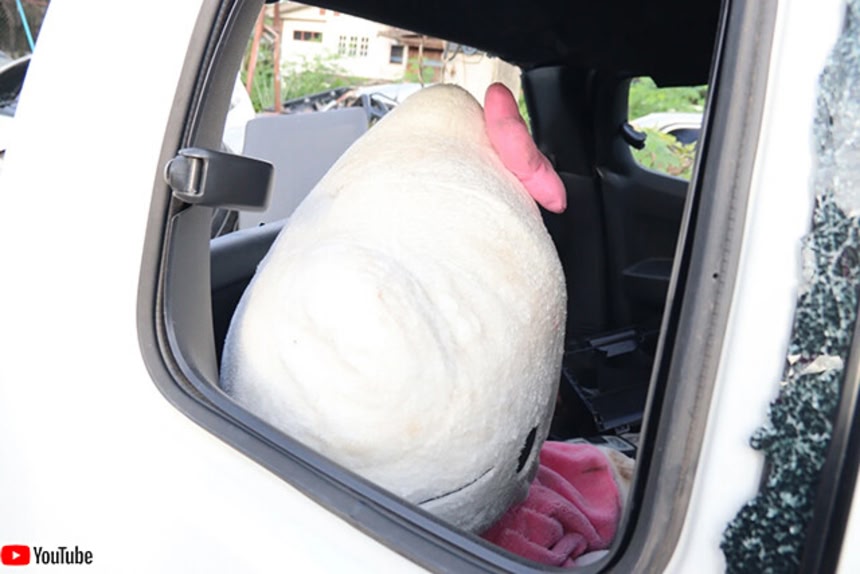 廃棄された車からハローキティを盗んだカップルが返しに来る