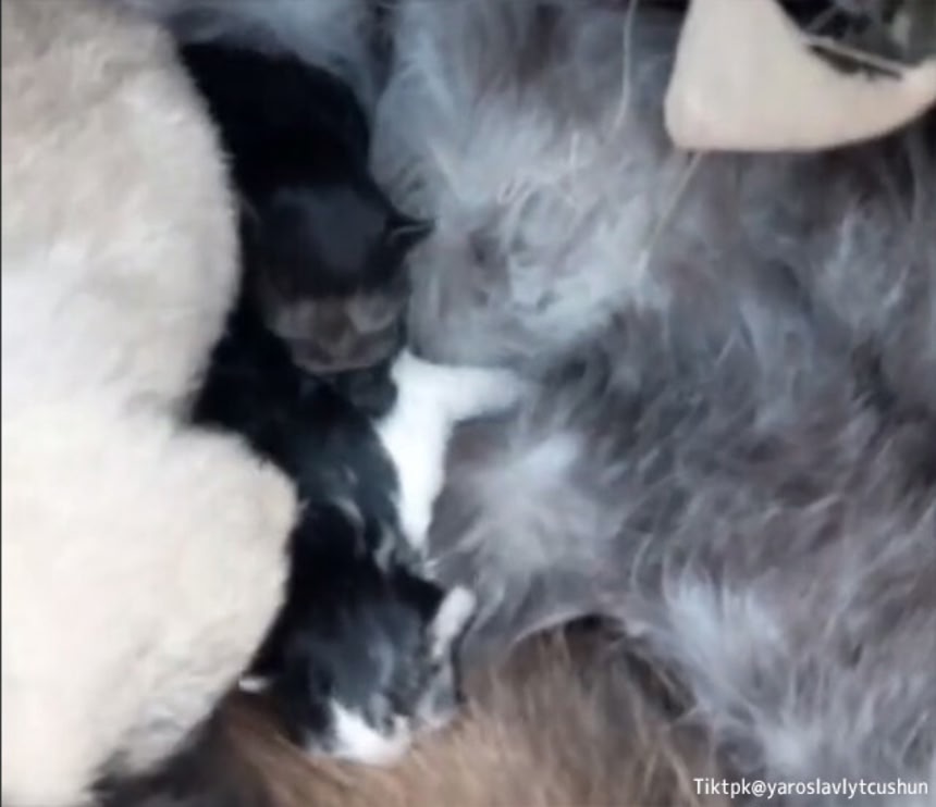 するとそこには、まだ生まれたばかりの小さな赤ちゃん猫の姿があった。母猫は出産したばかりだったようだ。