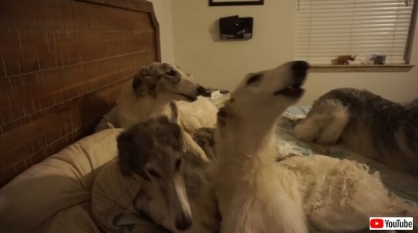 そんなボルゾイが4匹も、室内での大合唱を披露してくれている動画を見つけたよ。音量に注意して楽しんでね!