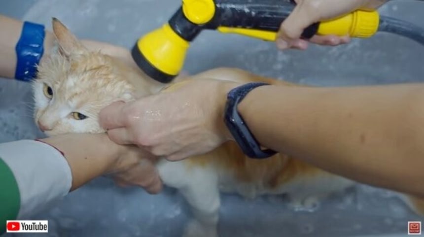 この画像を大きなサイズで見る過酷な野良猫生活の中で、猫は歯のトラブルや大量のノミを抱えていた。ペットサロンでお風呂に入り、ブラッシングをしてもらったよ。おとなしくってとってもいい子。