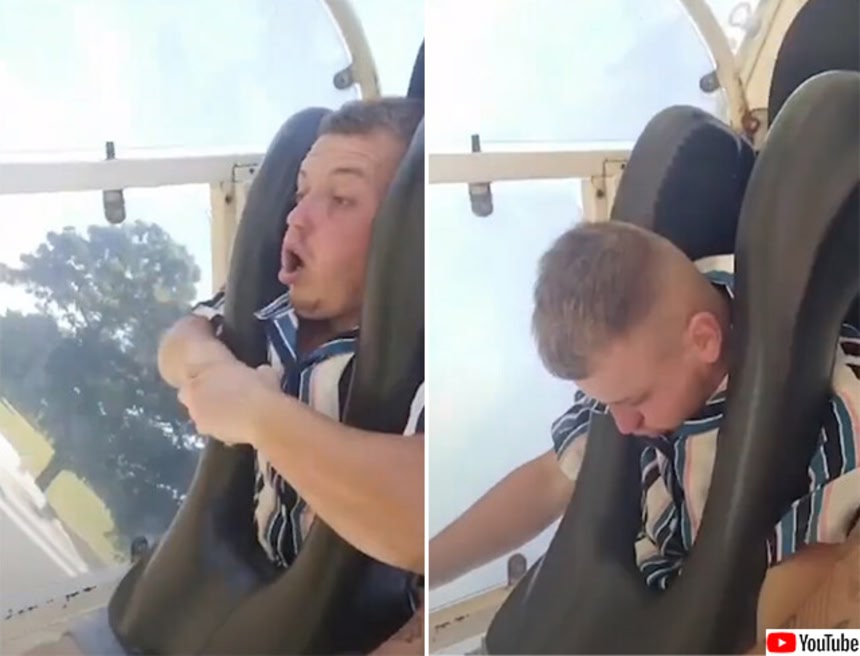 ところが、この乗り物は彼の想像する恐怖を上回っていたようだ、乗ってから45秒後に、10~15秒くらい気を失ってしまう。