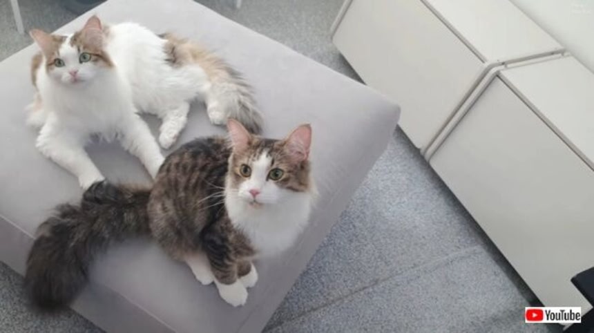 月曜の夜、お疲れモードのお友だちもとっても多いことと思う。そんなみんなに、安らかに眠りについてもらえるように、猫たちの可愛いシンクロシーンをお届けするよ。存分に癒されてほしいよ。