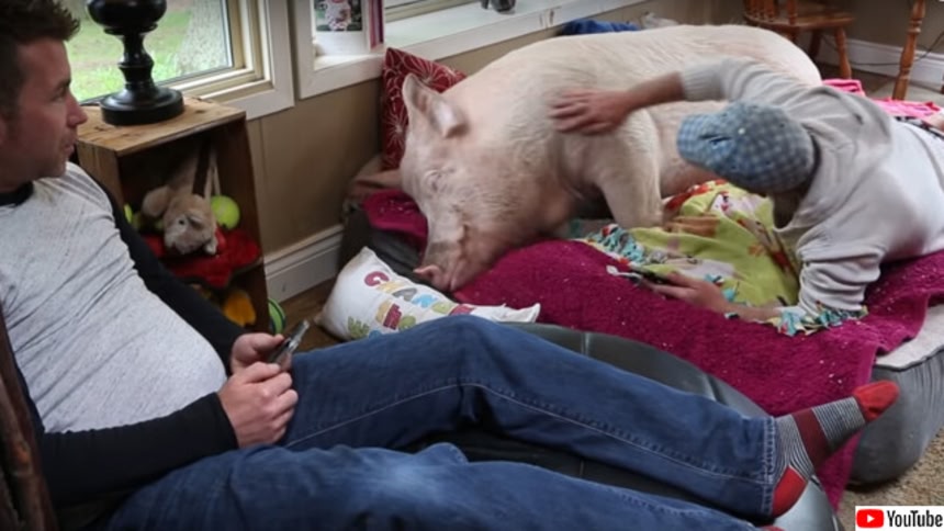 カナダでカップルと暮らすエスターさんが、ミニブタと聞いて購入したのにまさかの巨大化。