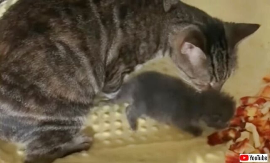 この画像を大きなサイズで見るウーゾと名付けられた子猫は、生後10日ほどだと思われる。この家のお母にゃん、サラさんがすぐにウーゾくんのお世話を引き受けてくれたみたいだ。