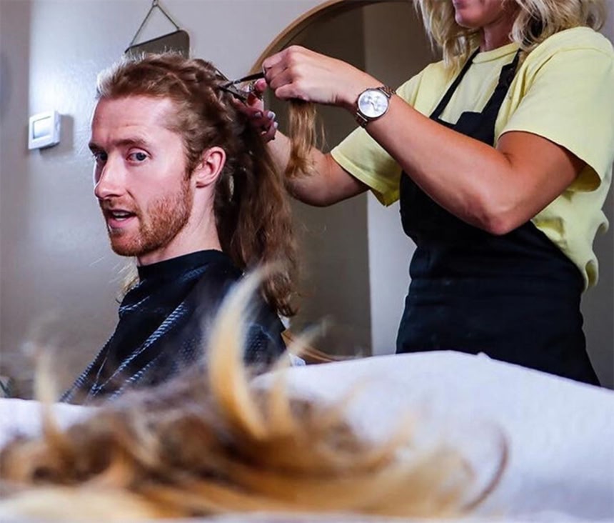 そして、マットさんは友人たちとヘアカットパーティーを開き、長い髪をバッサリと切り落とした。
