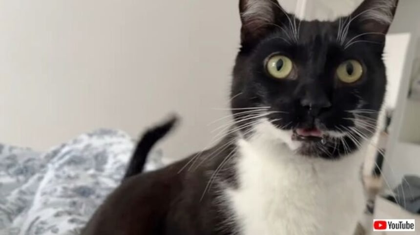 顔の模様も相まって余計に「なんだ?」といってるように見えるw