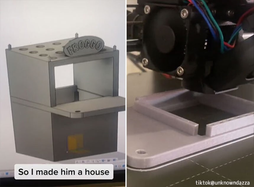 設計図を描き、3Dプリンターで仕上げたそのお家はフェンスの空洞の長方形にぴったりとはまる素敵なサイズ。