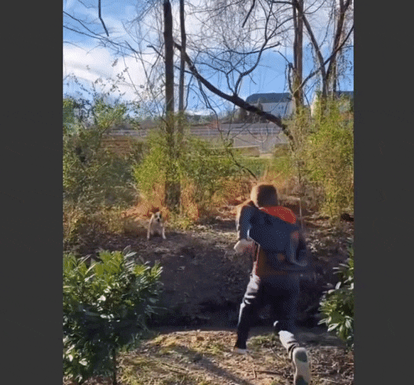 ほんのすこし、飛ぶ位置がずれていたら衝突は避けられたかもしれない。いずれにせよ犬も少年も前方不注意というところだろうか?