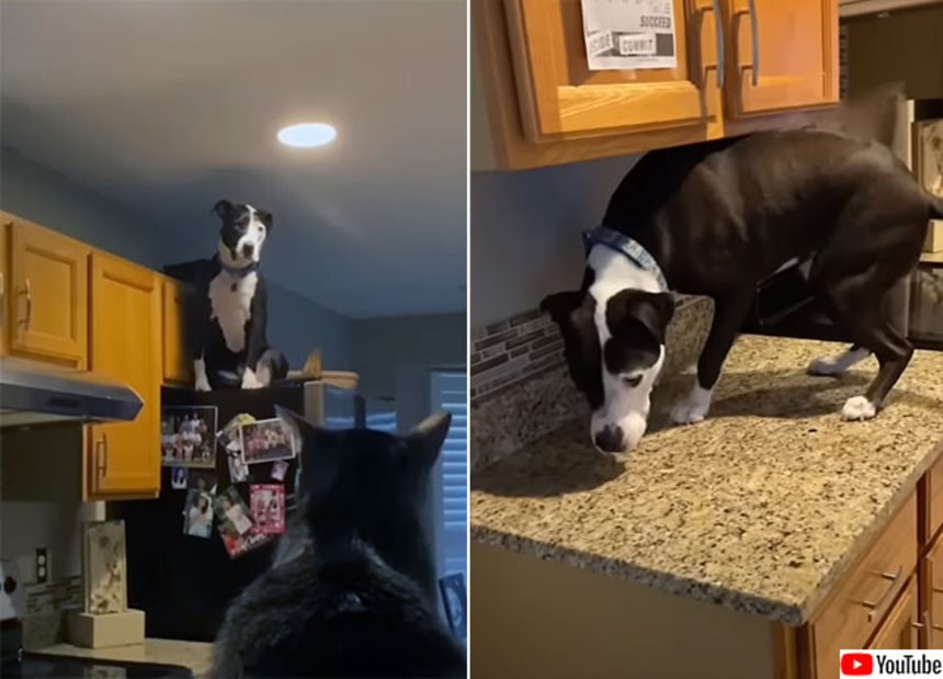 この画像を大きなサイズで見る猫は高い場所が好きだ。キャットタワーが人気なのはそんな習性があるからだ。だが小さい頃から猫と一緒に暮らしている犬の場合、自分を猫だと思い込んでしまっているようで、やはり高いところを好むようになってしまった。