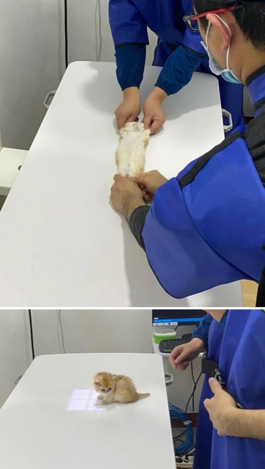 手足押さえつけられて CT撮ってる子猫可愛すぎる(*’ω’*)