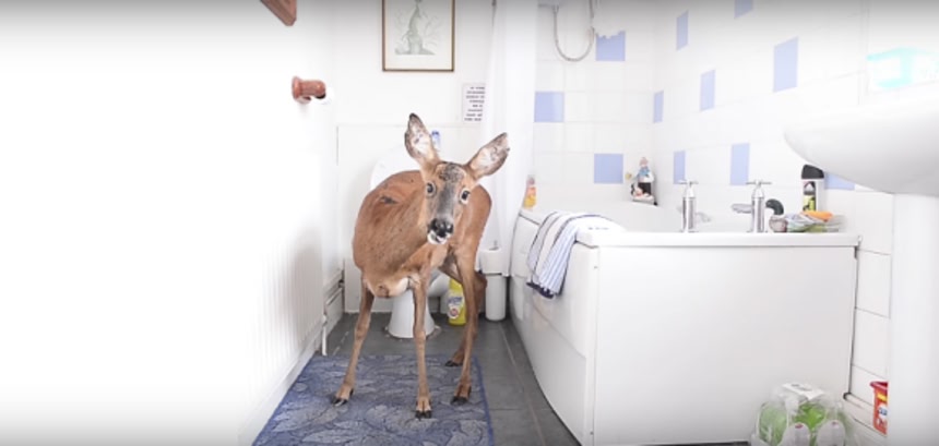 数年前に、弱りはてた孤児の赤ちゃん鹿に出会った男性は、元気を回復するまで、自宅の敷地内でお世話をすることにした。