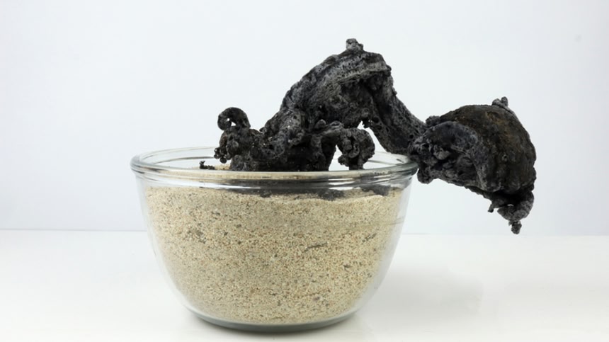 アルコールを浸透させた砂にこの混合物を入れて火をつけると、燃えた先から膨張し、炭のような色をへびのような細長い物体がうにょうにょと伸びて来る。