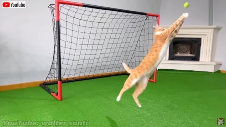 ここんちの次男坊インディくんは、知る人ぞ知るゴールキーパーキャットとしても有名で、百発百中の勢いでゴールを守り続けているんだ。