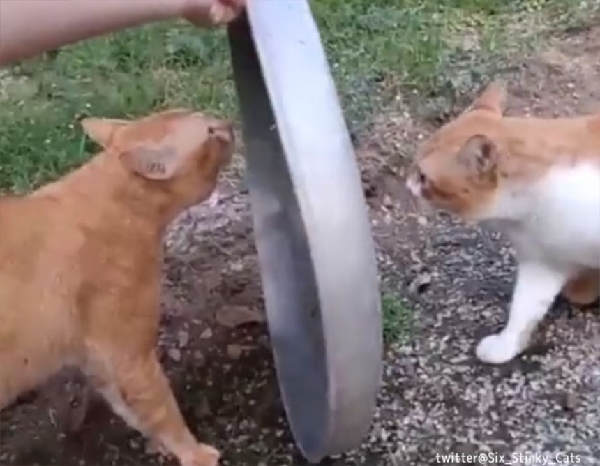 この画像を大きなサイズで見るいきなり出オチ感満載だが、猫同士がタイマン勝負を行っていた時、それを止める方法があるという。